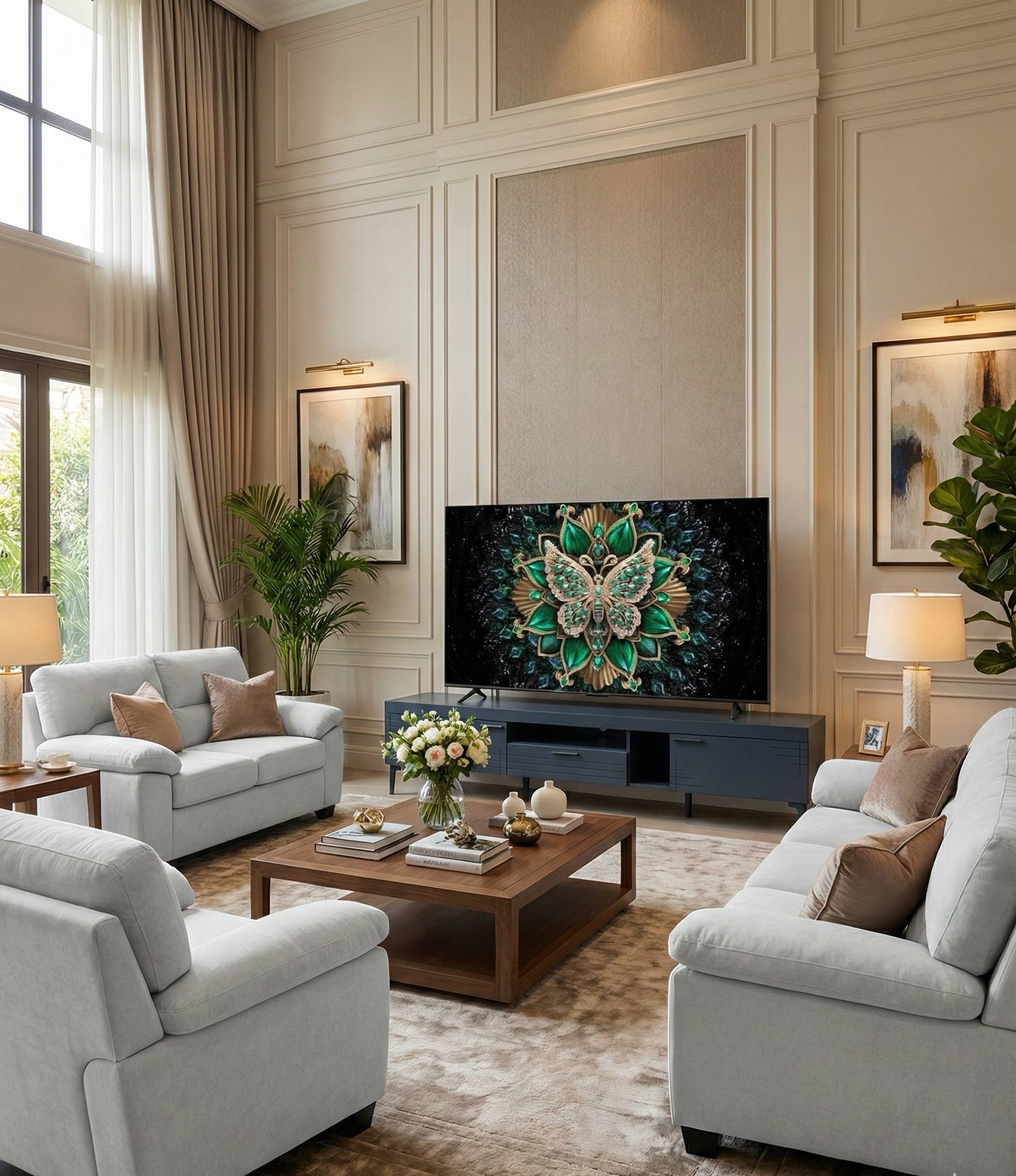 البيت اختلف شكله كثير بعد الترتيب، خصوصًا مع الشاشة الكبيرة.