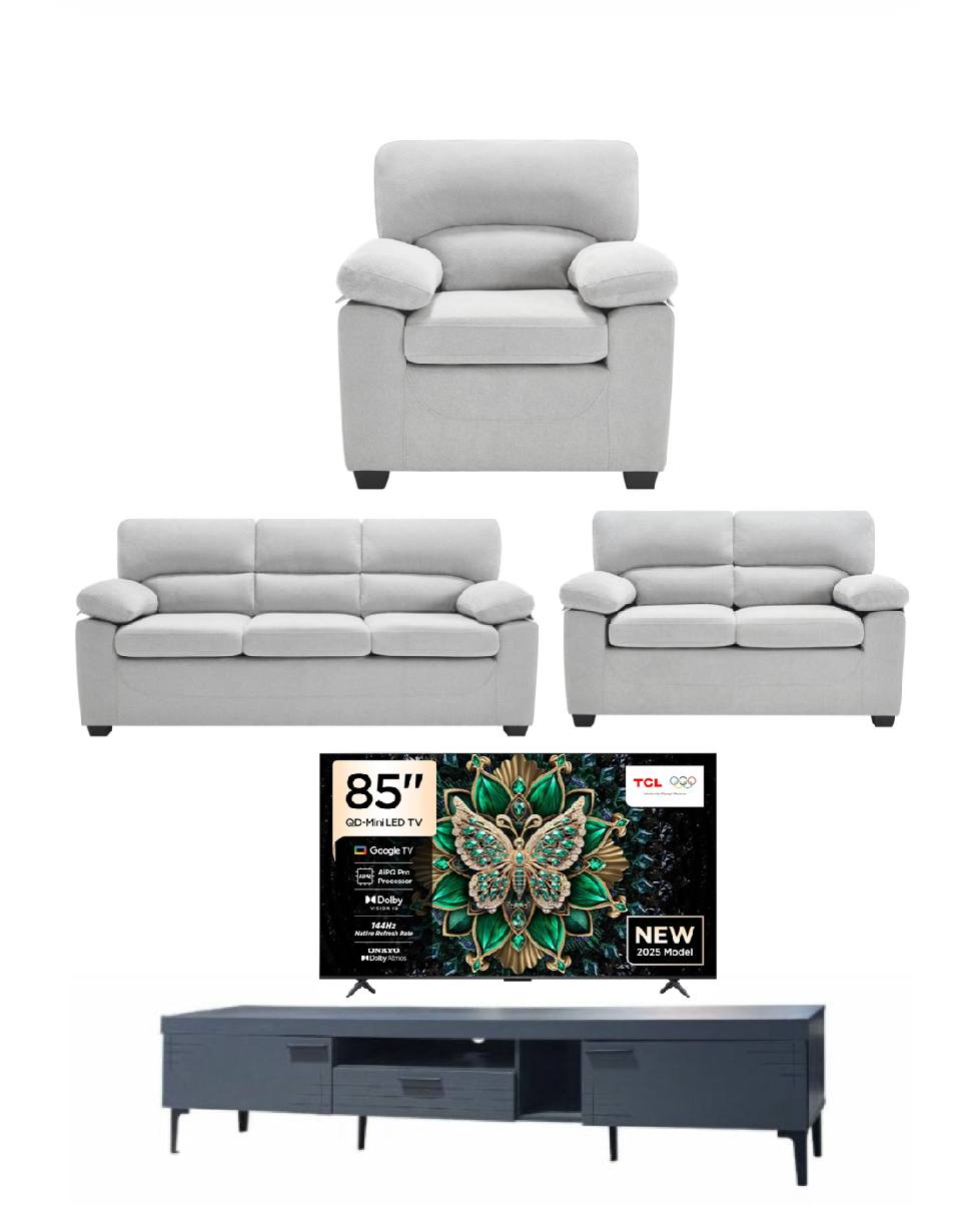 والله الطقم كامل ممتاز، الكنبات مريحة والشاشة كبيرة وتعطي فرق واضح بالصالة.